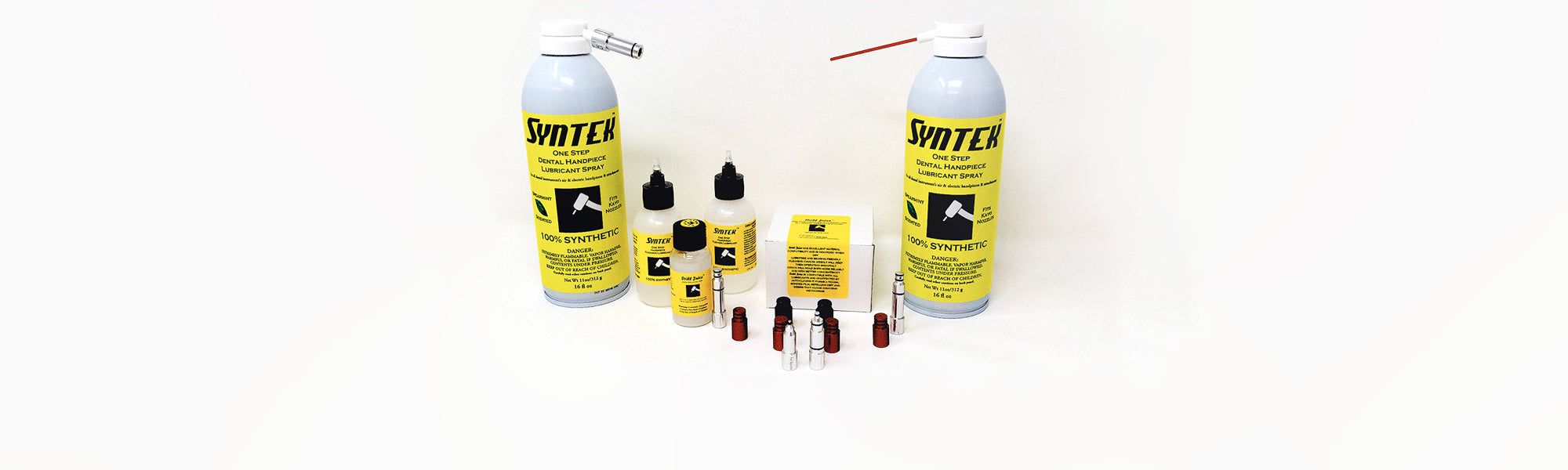 Syntek full synthetic dental handpiece lubricants, available in aerosol and dropper, are proudly made in America. Drill Juice is our chuck cleaner, which is unique in the industry. These are brands that Dentalight owns. Syntek was specifically formulated for use in all dental instruments and is more competitively priced than foreign brands.
